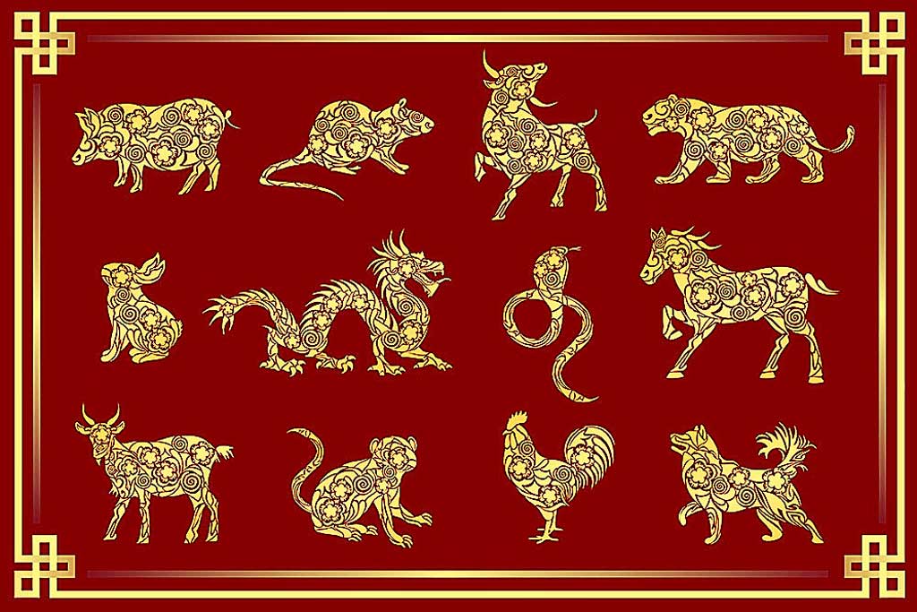 El zodiaco chino se compone de 12 animales que se repiten cada 12 años. Además, el año de nacimiento define un elemento: Metal, agua, madera, fuego o tierra, que complementa el perfil energético. La siguiente lista señala los signos por año de nacimiento: