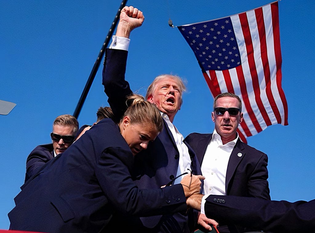 El 13 de julio de 2024, durante un mitin en Butler, Pensilvania, Donald Trump fue víctima de un intento de asesinato. Una bala le perforó la oreja derecha, manchando su rostro de sangre. Sin embargo, desafiante y erguido, levantó el puño frente a la bandera de Estados Unidos, transmitiendo una imagen de fuerza indomable. Rodeado por agentes del Servicio Secreto, fue escoltado a salvo, mientras el agresor era abatido. Ese instante, de dolor y valentía, hizo que muchos se preguntaran si allí mismo Trump había ganado la batalla y, quizá, las elecciones.