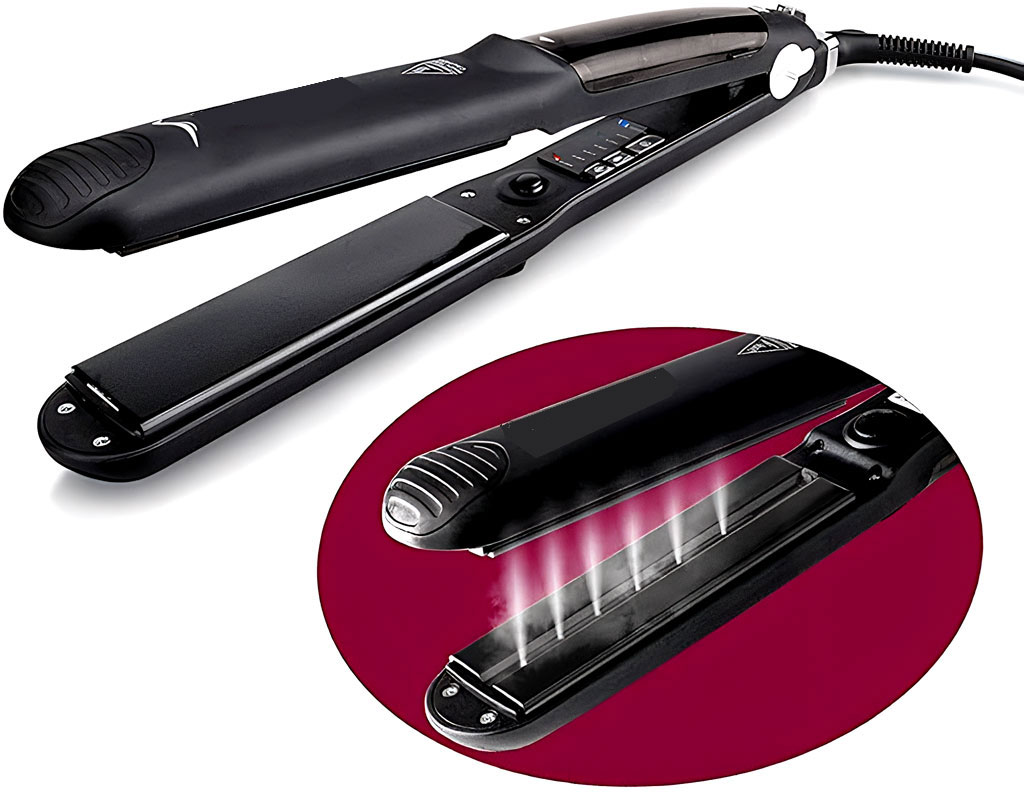 Funciona de manera similar a una plancha de ropa, pero en versión estética. Emite vapor de agua mientras se desliza por el cabello, lo que ayuda a mantener la hidratación durante el alisado y a suavizar la fibra capilar. No solo alisa, sino que contribuye a sellar la cutícula con humedad, evitando un resecamiento excesivo.